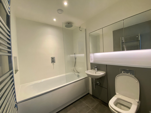 Ventilation to each apartment is facilitated via an MVHR unit, providing fresh tempered air into the living spaces and bedrooms, and extracting stale air from the bathroom pods and kitchen areas.