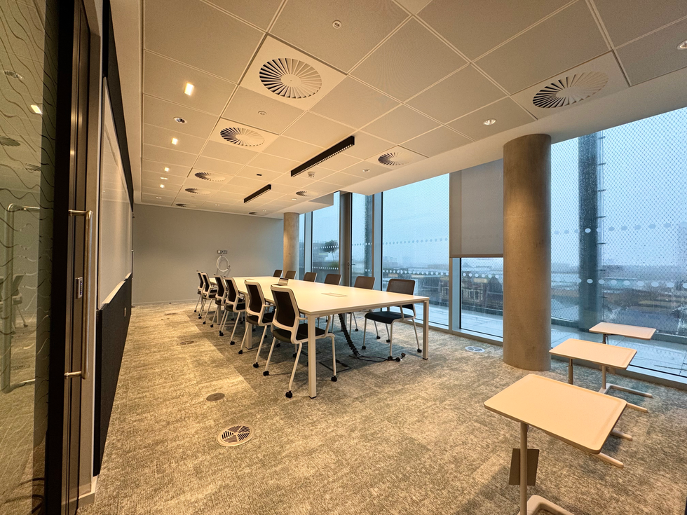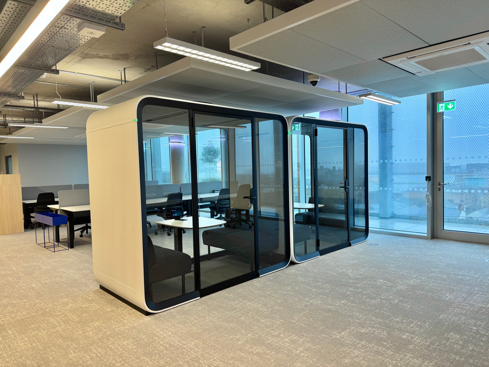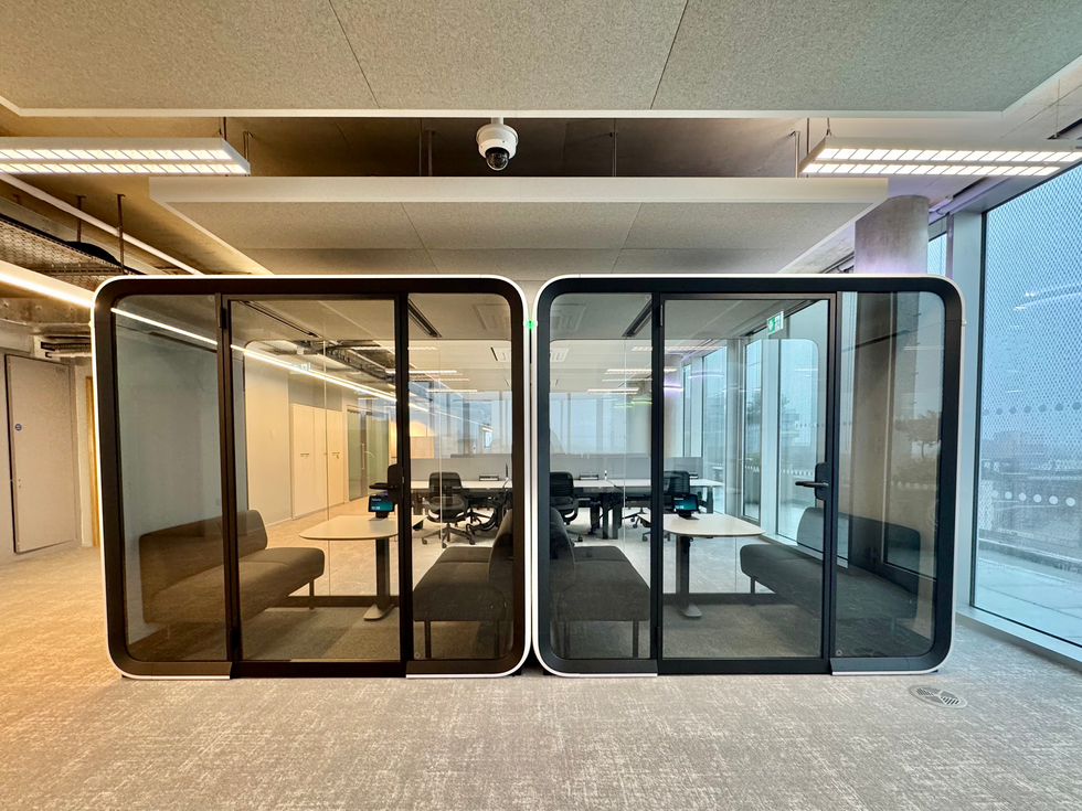 The Kingsway boasts 114,000 sqft of commercial floorspace, providing flexible co-working and office opportunities for innovative tech, digital, and creative businesses. This single-floor fit-out is now operating as a modern workspace, featuring offices, call booths, a kitchen, and toilet facilities.